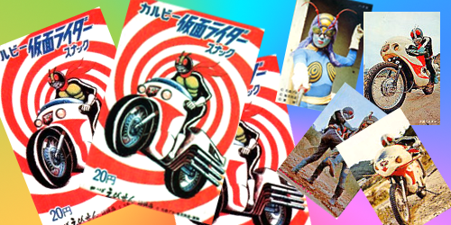 71年〜73年まで当時のカルビー製菓が発売した、仮面ライダースナックが大ヒットしました!
