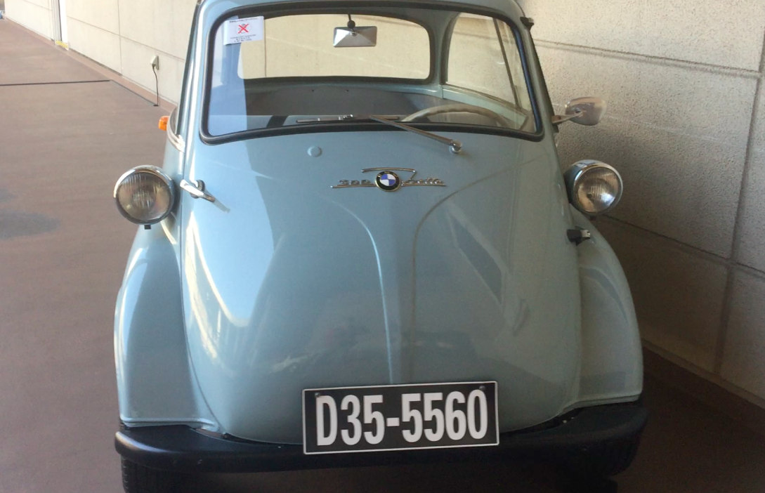 “第二次世界大戦で工場などの多くを失い倒産寸前の状態にあったドイツのBMWが、イタリアのイソ社とライセンス生産契約を結び、独自の改良を加えて販売。ドアはフロントの一枚だけの二人乗りで、三輪と四輪のモデルが製作された。ガラス部分が大きく、シャボン玉に似た丸いカタチから「バブルカー」の愛称で親しまれたユニークなクルマ。”