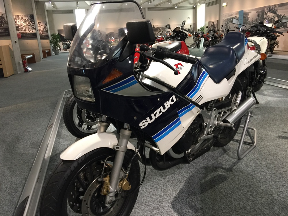 “国産車初のアルミフレーム、ハーフカウルを装備したレーサーレプリカ。’76〜’82年世界GP500ccマニュファクチャラーズチャンピオンを得たレーサー技術を盛り込んだマシン。”