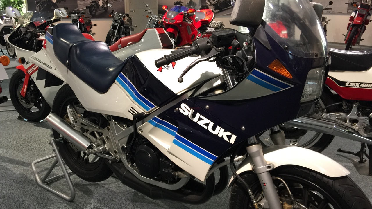 Japan’s first aluminum-framed, half-cowl racer replica. Features much technology from the Suzuki racers which won the Manufacturer’s Championship in the World GP 500cc class from ’76 to ’82.